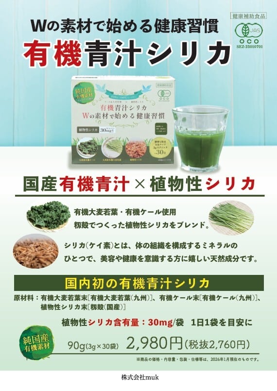 有機青汁シリカ(美容青汁)は、オーガニック素材にこだわった“飲む美容習慣”です。
